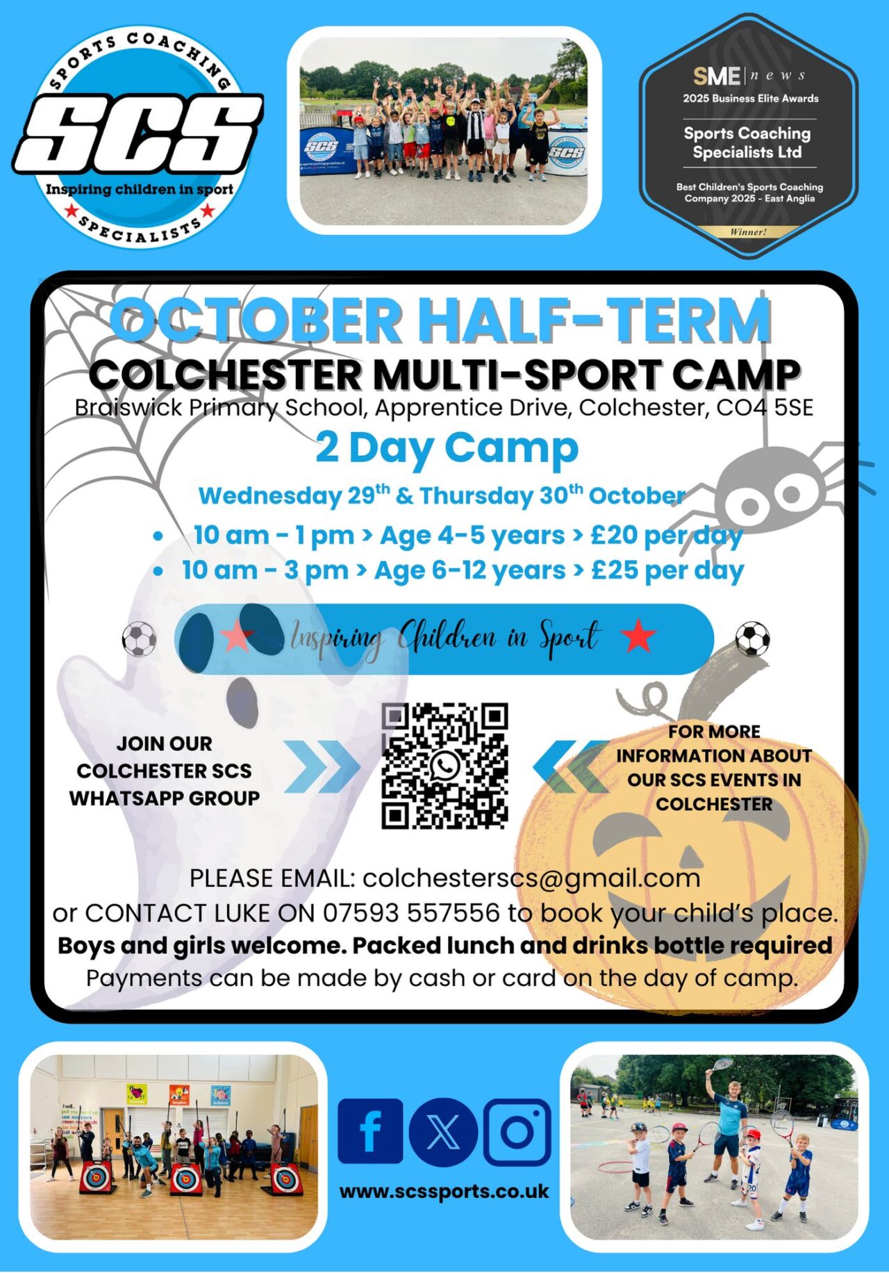Children will be provided with a nutritious meal, snacks throughout the day, the chance to try a wide range of sporting activities and a chance to enjoy some arts and crafts with the SCS staff.